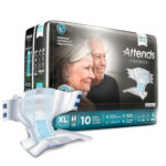 Attends Overnight Briefs are designed for extended wear and overnight protection, offering comfort, dryness, and peace of mind for both users and caregivers. With features like SecureGrip™ fastening, a Dry-Lock® core, and SmartCool™ breathable materials, these briefs deliver premium protection with softness and leak control.