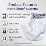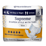 NorthShore Supreme Briefs deliver top-tier absorbency and containment in a classic tab-style design. They’re ideal for users seeking reliable, secure protection with features that support both comfort and skin health. Perfect for overnight use, extended wear, or those with limited mobility.